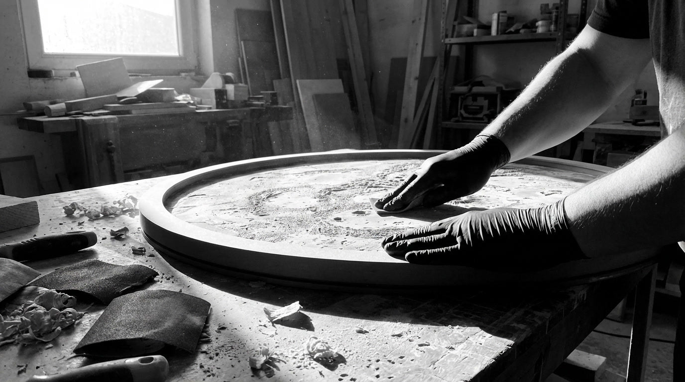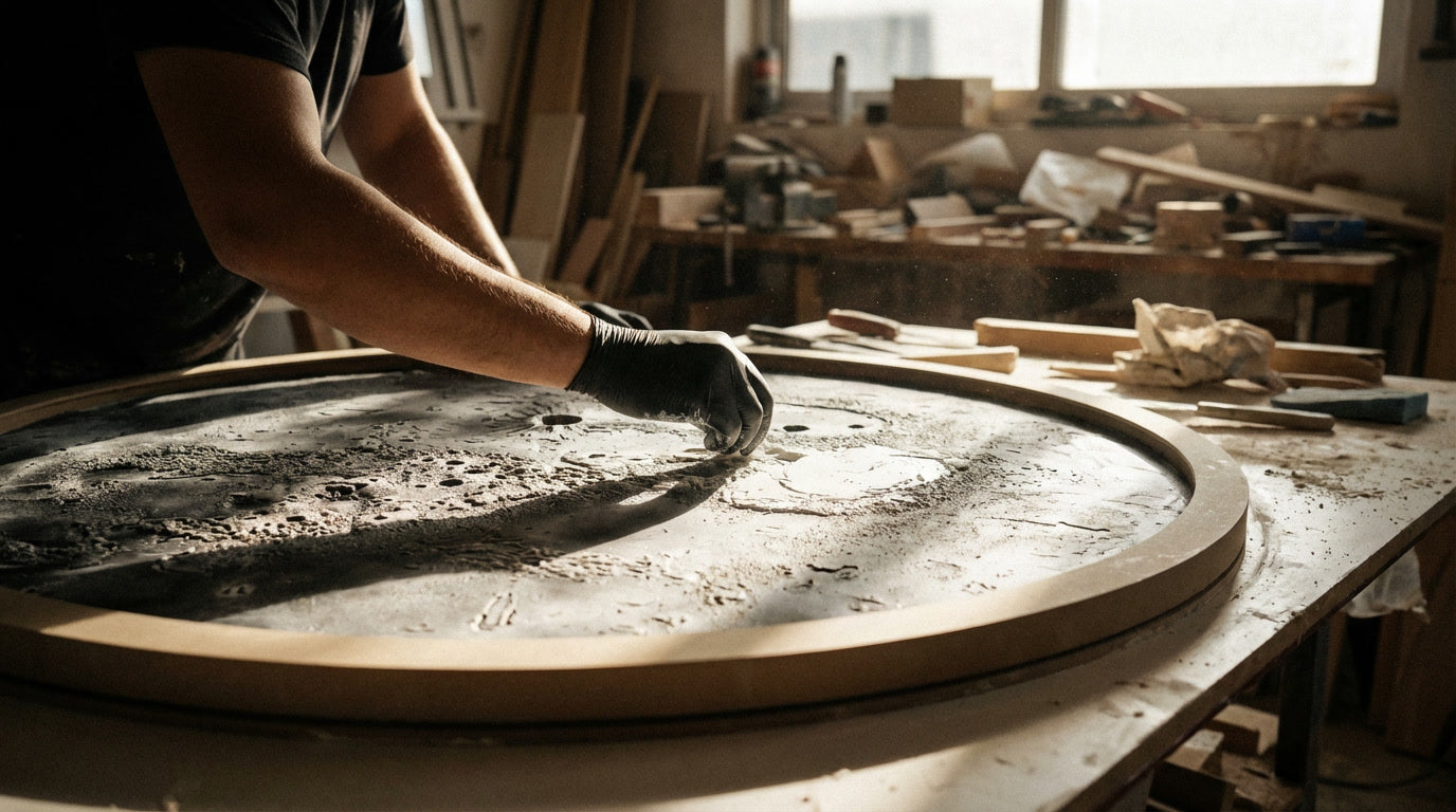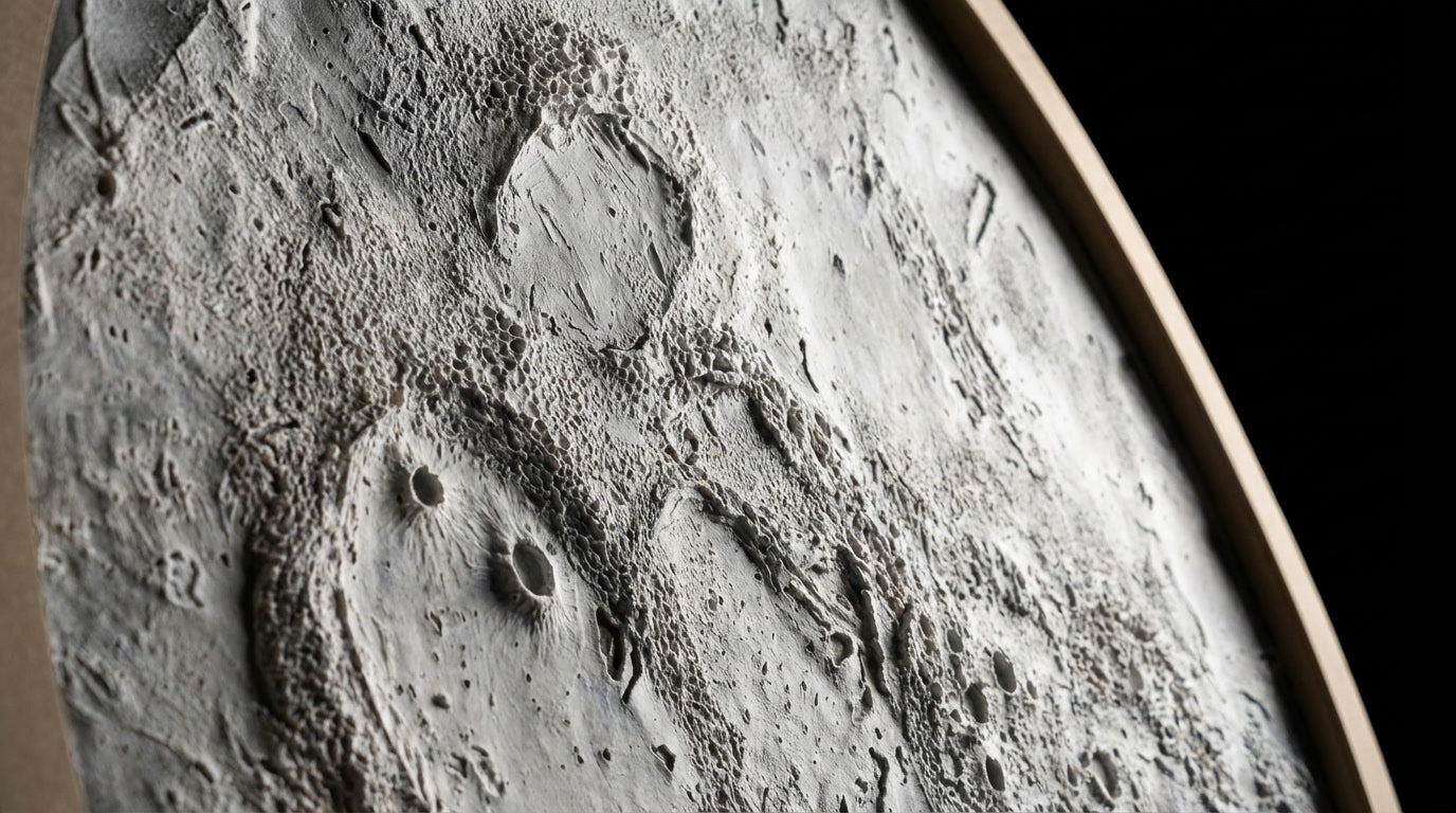 Woodnity tabloları, fabrikadan değil atölyeden çıkar. Her bir krater, ay yüzeyinin dokusuna sadık kalınarak zanaatkar ellerin özenli sıva tekniği ile şekillendirilir. Sizin duvarınız için eşsiz bir eser.